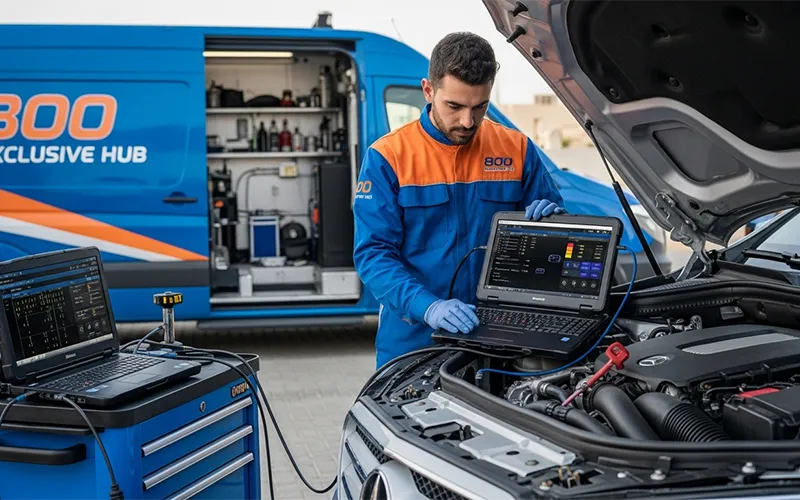 “My Mercedes C-Class was showing a check-engine light. I contacted 800 Exclusive Hub through WhatsApp – their technician came the same evening, diagnosed the issue, and fixed it at the workshop the next morning. Smooth, professional service!”