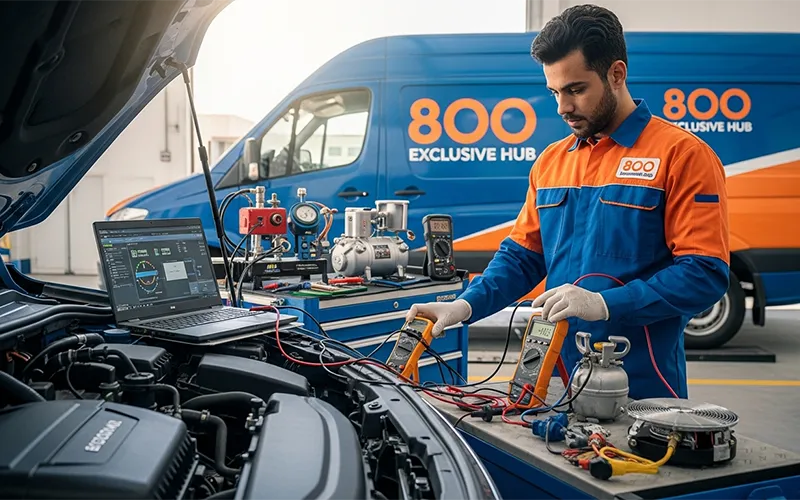 Full diagnostics, AC gas refilling, compressor repair, and all electrical system fixes.